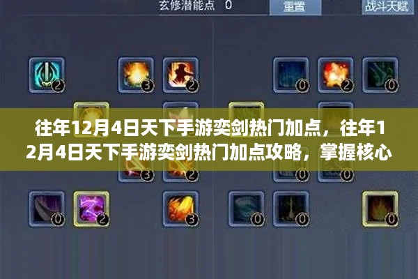 随着时光的推移,每年的12月4日都会迎来一波新的游戏热潮,在众多游戏中,天下手游以其独特的魅力和丰富的玩法吸引了无数玩家,奕剑作为其中的一大职业,其加点策略更是玩家关注的焦点,本文将围绕“往年12月4日天下手游奕剑热门加点”这一主题,为广大玩家带来详尽的攻略,助你轻松提升战力,成为江湖中的佼佼者。