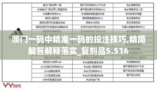 在澳门这个充满活力的博彩之都,许多玩家沉浸于一种彩票游戏中,尤其是一种被广泛讨论的玩法——“一码中”。本篇文章将为您深入探讨“澳门一码中精准一码的投注技巧,精简解答解释落实_复刻品5.516”,帮助您更好地理解这个游戏的技巧和策略。