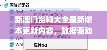 新澳门资料大全最新版本的数据驱动方案是其更新的重要内容之一,数据驱动方案是一种基于数据分析和处理的技术方案,通过对大量数据的处理和分析,提取出有价值的信息,从而为用户提供更加准确、全面的资料。